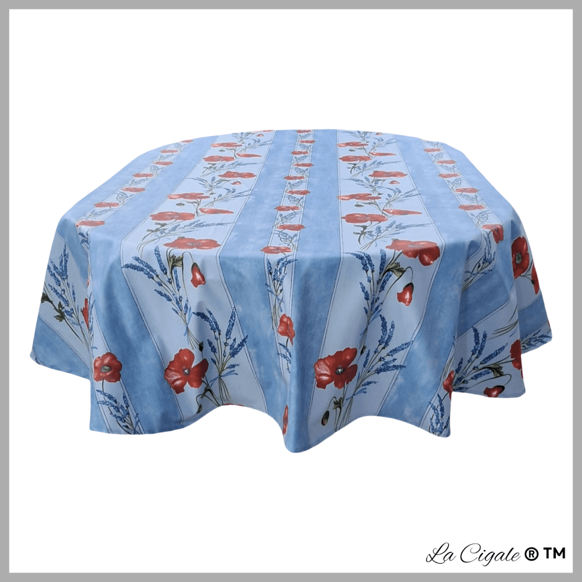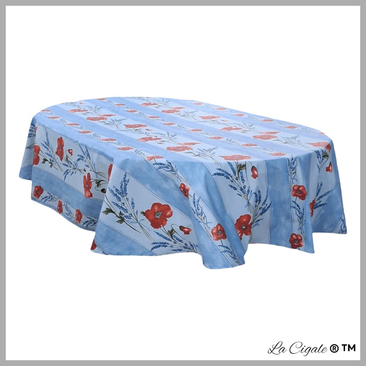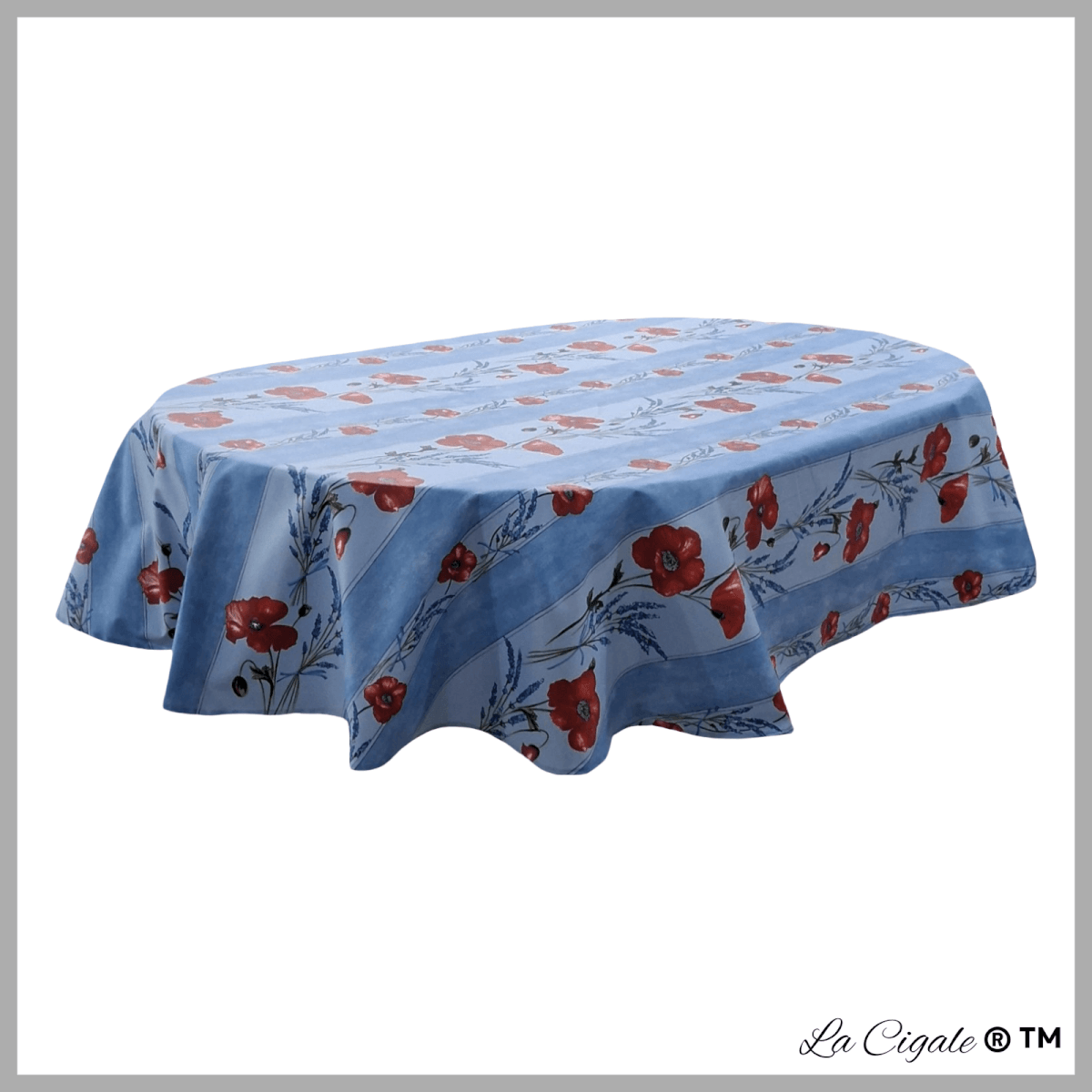Poppy Blue Oval Acrylic-coated Tablecloth